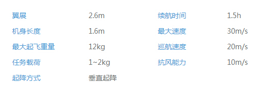 縱橫CW-10大鵬復(fù)合翼無人機(jī),翼展2.6米,最大續(xù)航時(shí)間90分鐘,最大載荷達(dá)2kg,巡航速度為20m/s。同時(shí)采用RTK定位,定點(diǎn)起降,精準(zhǔn)作業(yè)。在航空測繪、管線巡檢、應(yīng)急、監(jiān)視等領(lǐng)域,有著較為寬廣的運(yùn)用。