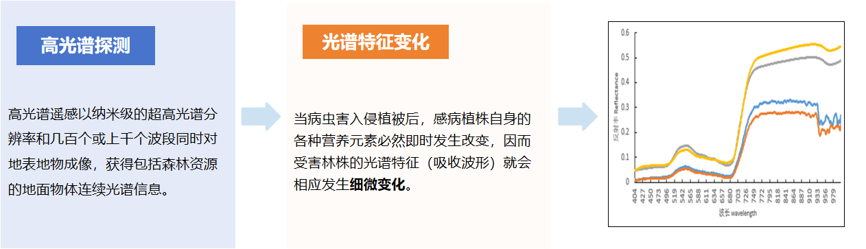 高光譜遙感以其強(qiáng)大的光譜敏感性(納米級的窄通道)能夠探測到植被在病蟲害侵害早期與健康植被的細(xì)微光譜差異,為森林病蟲害的早期監(jiān)測預(yù)警提供了可能。通過AIMS多模態(tài)航攝獲取高分辨率的影像數(shù)據(jù)、多光譜數(shù)據(jù)及點(diǎn)云數(shù)據(jù),時(shí)空同步的多源數(shù)據(jù)融合,結(jié)合機(jī)器學(xué)習(xí),利用林業(yè)領(lǐng)域的知識(shí)庫進(jìn)行訓(xùn)練,可以做到單木級別的松材線蟲染病樹木的自動(dòng)化提取?;跇颖菊{(diào)查、目視解譯、圖像識(shí)別、機(jī)器學(xué)習(xí)、深度學(xué)習(xí)等方法解決林業(yè)病蟲害方面的需求。