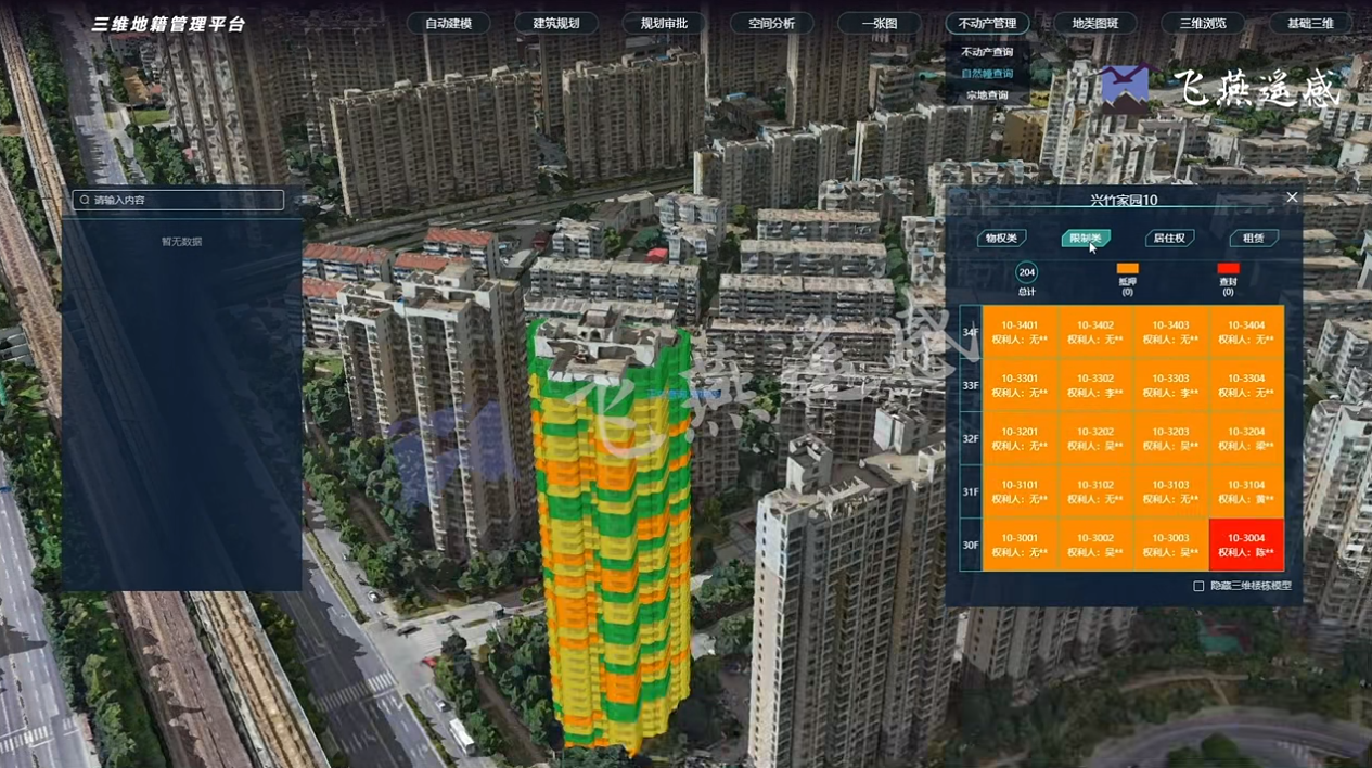 基于城市實(shí)景三維模型和相關(guān)國土信息數(shù)據(jù),提供二三維數(shù)據(jù)一體化展示、國土資源一張圖管理功能,支持三維宗地、三維樓幢、三維戶室的多層級(jí)精細(xì)化地籍管理。
