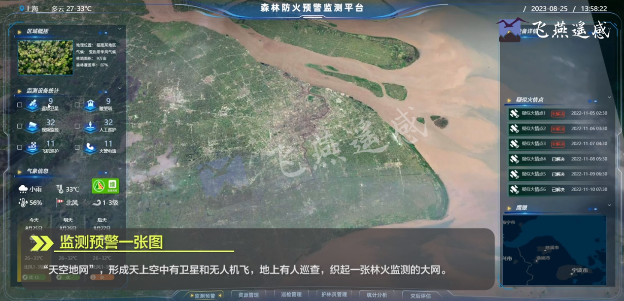 集成遙感技術(shù)、GIS技術(shù)、三維技術(shù)、大數(shù)據(jù)技術(shù)、人工智能等技術(shù),融合多源數(shù)據(jù)(林區(qū)實(shí)景三維數(shù)據(jù)、地理信息數(shù)據(jù),“空天地卡人”監(jiān)測數(shù)據(jù),融合基礎(chǔ)資源、森林資源、林業(yè)設(shè)施設(shè)備、林業(yè)物資庫、巡護(hù)管護(hù)人員等數(shù)據(jù)),實(shí)現(xiàn)災(zāi)情自動(dòng)巡航監(jiān)控、煙火智能識(shí)別、火點(diǎn)精確定位、火情分析研判、數(shù)字預(yù)案、輔助決策到災(zāi)后評(píng)估等功能。建立起森林防火事前、事中、事后全過程的業(yè)務(wù)鏈,有效提高林區(qū)日常管理效率,提升林區(qū)主管部門對(duì)火情監(jiān)測預(yù)警、應(yīng)急調(diào)度等科學(xué)決策能力水平。