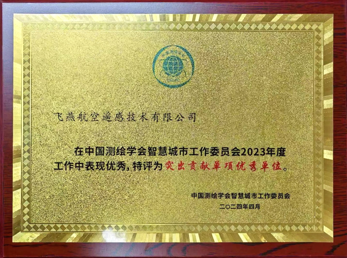 會議舉行了降重的表彰儀式,飛燕遙感作為中國測繪學(xué)會智慧城市工作委員會委員單位,在2023年度工作表現(xiàn)優(yōu)秀,并評為“突出貢獻(xiàn)單項優(yōu)秀單位”。