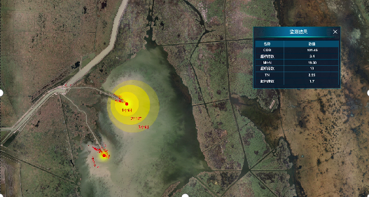 通過水下污染物檢測(cè)傳感器結(jié)合地理信息數(shù)據(jù)對(duì)排污口進(jìn)行實(shí)時(shí)的監(jiān)控,從該頁面可以看到排污口污染物排放超標(biāo)情況,以及隨著時(shí)間推移,污染物的擴(kuò)散情況。
