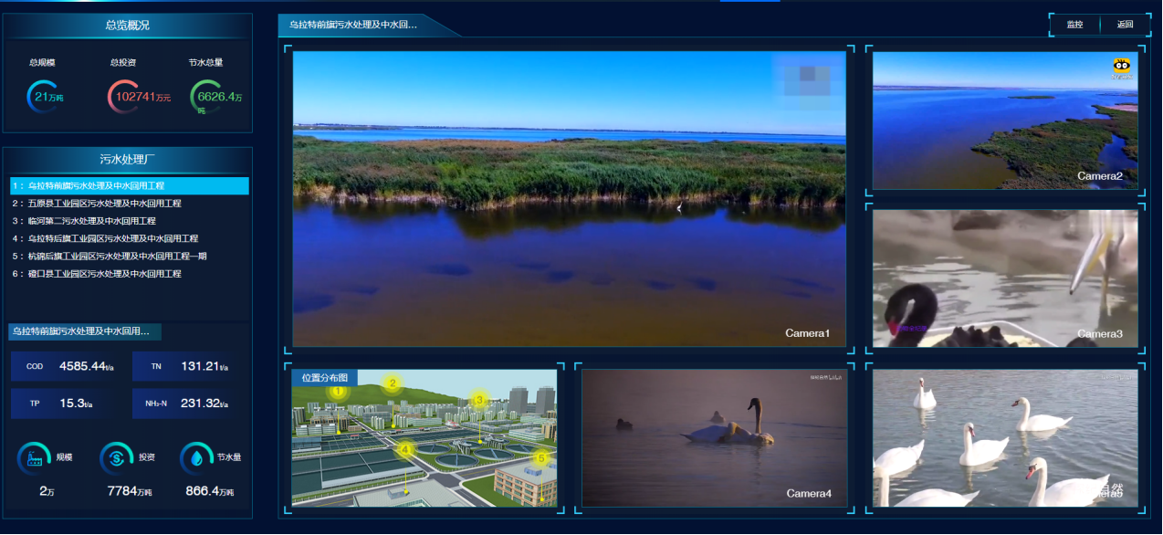 將個(gè)污水處理廠的監(jiān)控視頻畫面與地理位置關(guān)聯(lián),可實(shí)時(shí)瀏覽各監(jiān)控畫面。