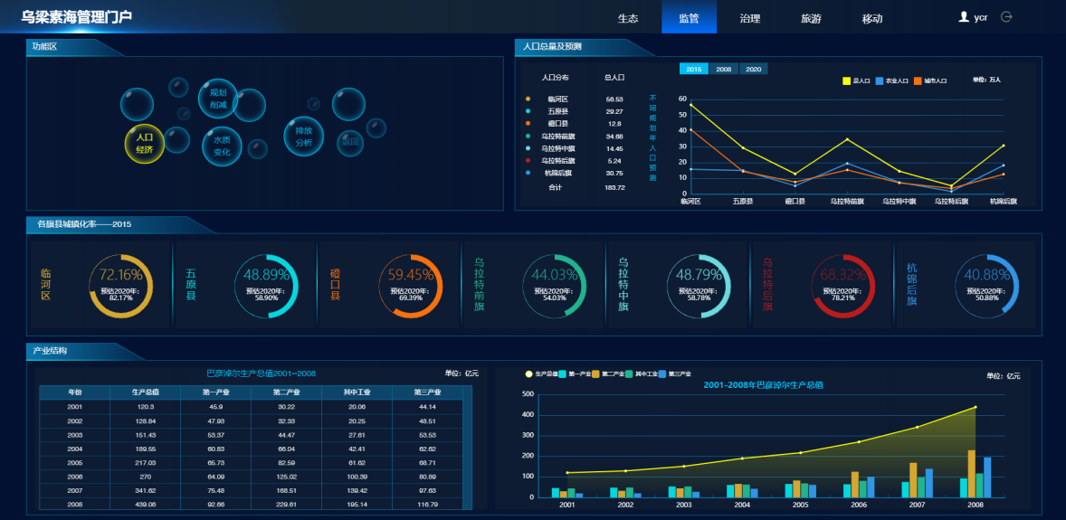 通過數(shù)據(jù)統(tǒng)計(jì)表格的形式,從人口經(jīng)濟(jì)、規(guī)劃削減、水質(zhì)變化、排放分析等方面,從水質(zhì)變化的根本處著手,與人口經(jīng)濟(jì)、宏觀調(diào)控等社會(huì)因素結(jié)合,對(duì)水質(zhì)情況進(jìn)行深度的監(jiān)控管理。