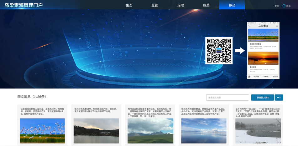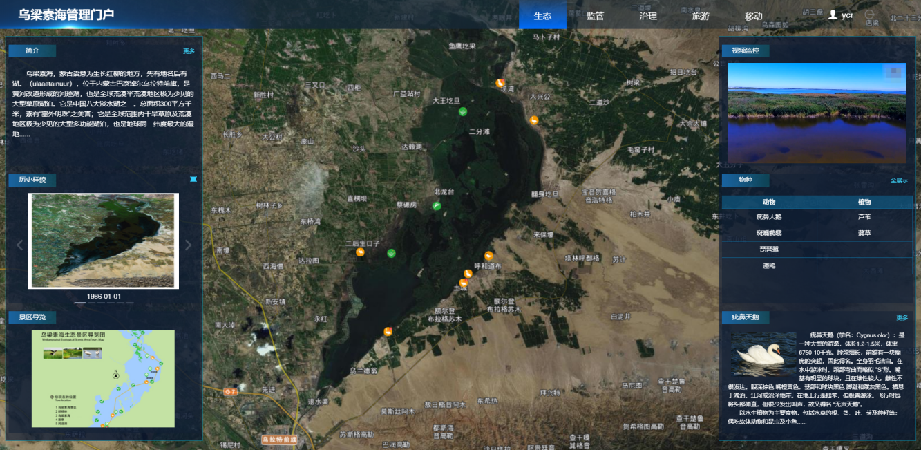 以文字、圖片、航攝影像的形式,對(duì)烏梁素海的地理環(huán)境、歷史樣貌、區(qū)域內(nèi)珍惜物種等信息進(jìn)行宣傳展示,對(duì)生態(tài)環(huán)保的概念進(jìn)行推廣普及。
