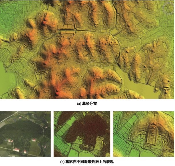 根據(jù)近地表歷史文化遺跡遺存具有特征起伏微小、分散而不連續(xù)、植被覆蓋茂密、地形特征和遺存特征混雜等特點(diǎn),采用顧及近地表考古遺址考古遺址空間特性的點(diǎn)云濾波與分類算法,得到精細(xì)表達(dá)的地表微地形數(shù)字高程模型;實(shí)現(xiàn)近地表考古遺址空間特征的準(zhǔn)確提取和表達(dá),并結(jié)合嚴(yán)格地理配準(zhǔn)的高分辨率光學(xué)遙感影像,進(jìn)行近地表考古遺址信息的呈現(xiàn)與判讀。