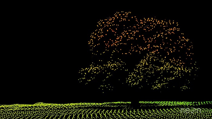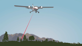 LiDAR系統(tǒng)還有一個(gè)非常重要的特性,就是它所發(fā)出的脈沖不僅會(huì)到達(dá)樹(shù)頂并返回,有時(shí)候也可以穿透某些地物。就好像陽(yáng)光照進(jìn)樹(shù)林中一樣,LiDAR的光束也同樣可以穿透樹(shù)冠,并反射樹(shù)冠以下的部分。LiDAR系統(tǒng)這種不僅可以記錄樹(shù)頂反射信息,而且可以穿過(guò)樹(shù)冠直達(dá)地面的特性,使得LiDAR系統(tǒng)成為在林業(yè)研究中非常有用的工具。這種可以穿透樹(shù)冠并提供多次回波的特性,可以告訴我們有關(guān)樹(shù)林結(jié)構(gòu)的更多信息。比如,它可以告訴我們樹(shù)的形狀,或者樹(shù)林樹(shù)葉的密度,有時(shí)甚至可以提供樹(shù)林里地面灌木的情況。