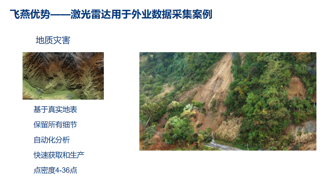多年的深耕細(xì)作,使飛燕遙感積累出大量經(jīng)驗(yàn),以激光雷達(dá)(LiDAR)測繪技術(shù)為核心,以自然災(zāi)害監(jiān)測預(yù)警為突破口,提出一整套自然災(zāi)害應(yīng)急管理解決方案。