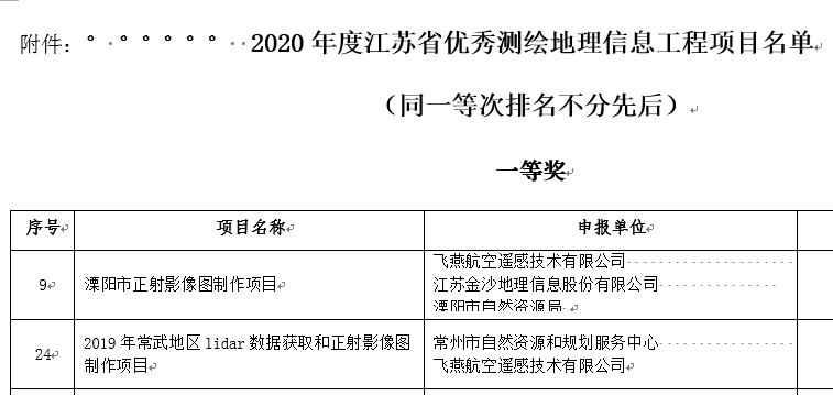飛燕遙感榮獲2020年度江蘇省優(yōu)秀測繪地理信息工程一等獎!